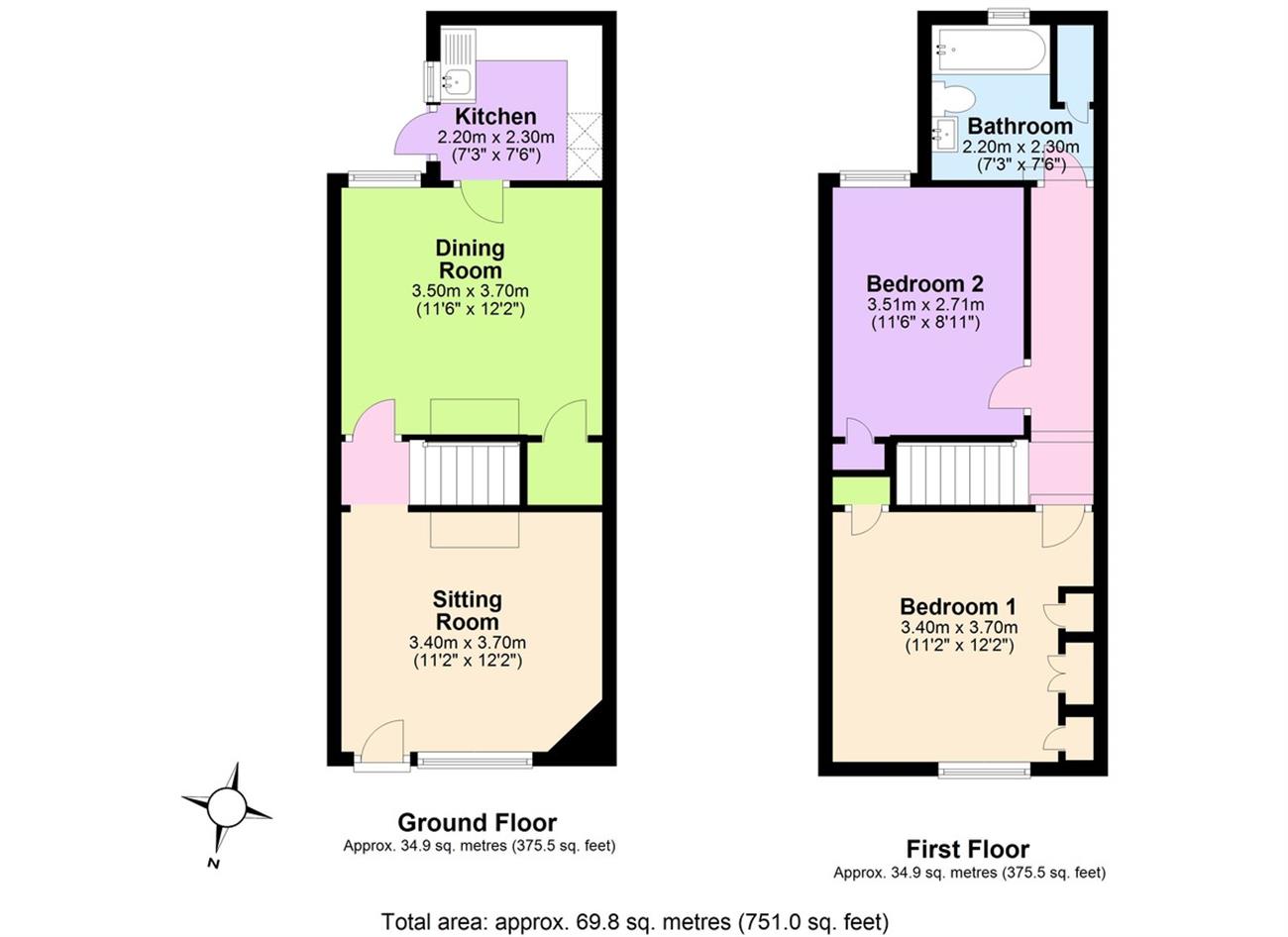 New UPVC windows and doors, living room and dining room with feature fireplaces, (display only), small refurbished shaker style kitchen, two double bedrooms, new bathroom with shower over the bath and enclosed WC and sink unit, new electric central heating system, new carpets throughout, garden and off street parking for one car.