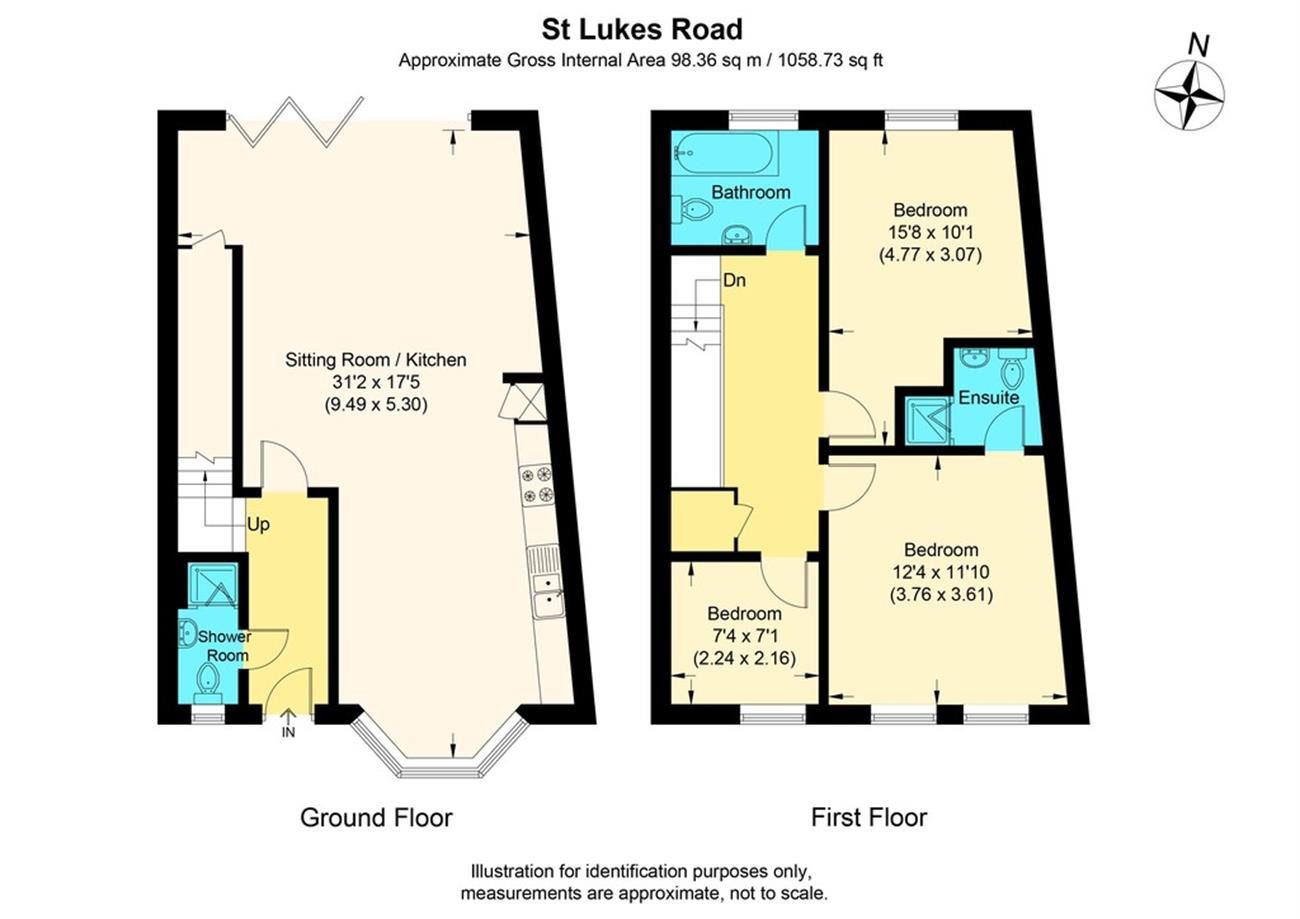 Main entrance into the hallway, shower room & wc on the ground floor, very spacious open plan living room with large bay window and beautiful kitchen along one wall with appliances, wide bifold doors to a patio and the garden, under stairs cupboard housing the under floor heating system, washing machine and tumble dryer, stairs to first floor, wide hallway and high ceilings, master bedroom with en suite shower room, second double bedroom, single bedroom/study, family bathroom, access to the loft which is boarded for storage, new sash windows, new grey carpets throughout and presented to a very high standard. Underfloor heating downstairs, radiators upstairs.